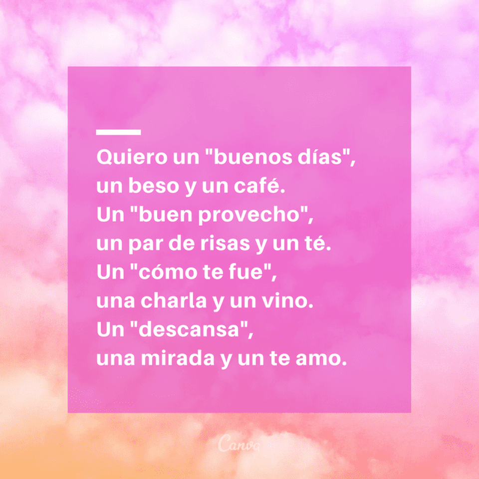La siguiente lista es una recopilación de poemas cortos que puedes enviar o recitar. Depierta mi vida… es hora de frases de buenos días para tu novio. Buenos días mi princesa, me hubiera gustado despertarme a tu lado para poder llenar tu boca de besos.
